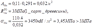 Проверяем брус на смятие поперек волокон. Принимаем 1 сорт древесины.