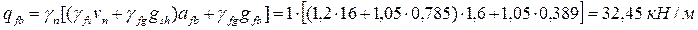 Погонная (линейная) нагрузка для расчета на прочность определяется по формуле
