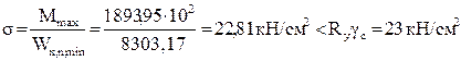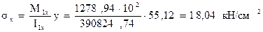 где y = 46,17 + 1,5 = 47.67 см – расстояние от центра тяжести сечения до наиболее удаленного волокна.