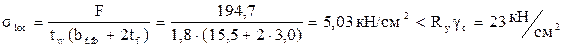 . Проверяем необходимость выполнения проверки стенки на устойчивость по п.7.3 [1], учитывая, что в крайних отсеках имеется местная нагрузка от давления балок настила.