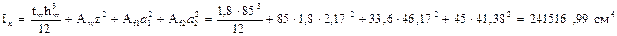 Момент инерции измененного сечения балки равен