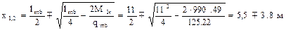 x1 =1.7 м, x2 = 9.3 м.
