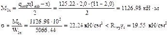 балки настила опираются на расстоянии 1,2 и 2,6 м от опор, а расстояние до места изменения сечений 2,0 м, то есть в месте изменения сечения sloc =0.