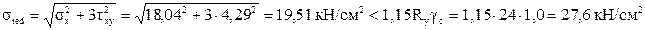 и проверяем его на прочность согласно п.11.16 [1] по формулам:
