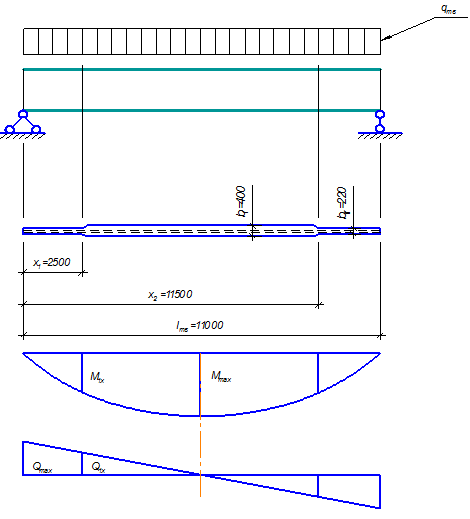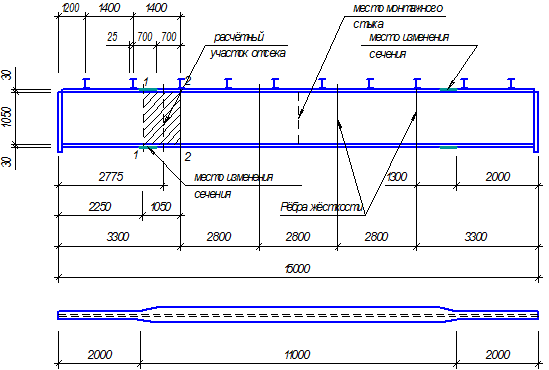 Рис.5. Изменение сечения сварной балки по длине