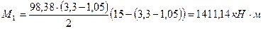 - изгибающий момент в сечении на границе расчетного участка отсека в точках 1 и 2: