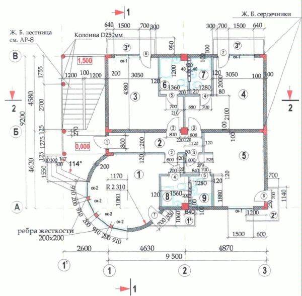 Фундаменты - монолитная железобетонная плита. Конструкция здания - монолитный железобетонный каркас с монолитными железобетонными перекрытиями со скрытыми балками по осям колон. Наружные и внутренние стены - монолитные ж/бетонные, выше из мелкоштучных блоков. Толщина наружных стен 200 мм. Наружные ограждающие стены выполняются с применением эффективного утеплителя, с последующей штукатуркой и покраской декоративной штукатуркой. Кровля - профнастил. Окна - металлопластик. Отопление индивидуальное. Данный коттедж рассчитан на использование его, как мини-гостиницы.