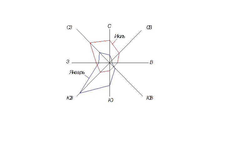 Роза ветров построена в соответствии с таблицей 1 и приведена на рисунке 1.