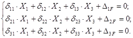 Для основної системи методу сил запишемо канонічні рівняння у вигляді системи лінійних алгебраїчних неоднорідних рівнянь: