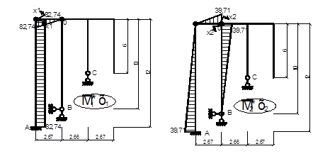 Основна система методу сил та епюри внутрішніх зусиль від одиничних значень невідомих та заданого навантаження в основній системі