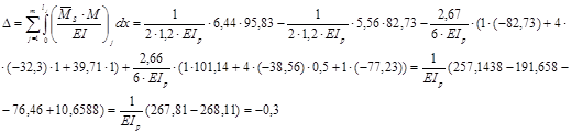Отже, вільні члени канонічних рівнянь методу сил обчислені вірно.