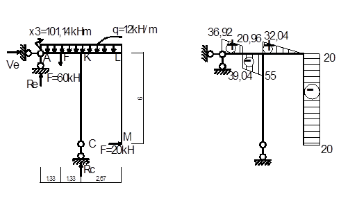 Отже, дана рама є тричі статично невизначною (має 3 невідомих методу сил) і може бути геометрично незмінна.