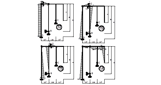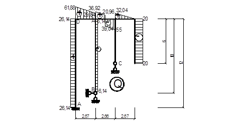 2). Епюру поперечних зусиль (Q ) будуємо з використанням епюри згинаючих моментів для заданої системи, розглядаючи окремо кожен її елемент.