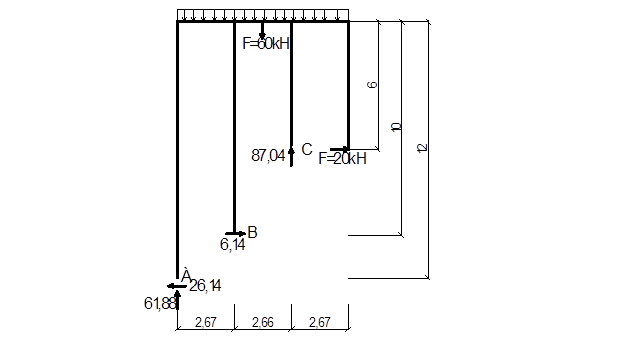 4). Статична перевірка поперечних та поздовжніх зусиль для заданої системи: