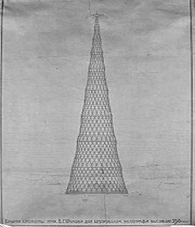 Первый проект башни на Шаболовке был разработан В. Г. Шуховым в 1919 году с расчётной высотой 350 метров. Из-за дефицита металла во время гражданской войны проектная разработка была реализована по второму проекту в виде конструкции высотой 148,3 метра. 19 марта1922 года началась трансляция радиопередач с уникальной антенной башни.