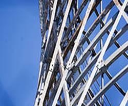 Шуховская башня в Москве никогда не реставрировалась. Попытки придать ей дополнительную прочность с помощью сварных элементов, закреплённых на уголках болтами к Шуховской клёпаной несущей сетке-оболочке (см. фото справа)