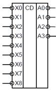 Сигнал соответствующий нажатой кнопке на клавиатуре должен быть преобразован в двоичный код для последующего его использования. Это реализовывается с помощью шифратора. В данном устройстве будет использоваться приоритетный шифратор, для предотвращения случая нажатия нескольких кнопок одновременно. В таком случае шифратор реагирует на нажатие кнопки соответствующей более старшему разряду числа.