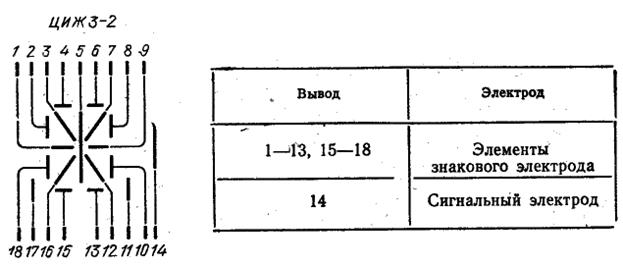 Рисунок 5.6 – Обозначение выводов жидкокристаллического индикатора ЦИЖ3-2