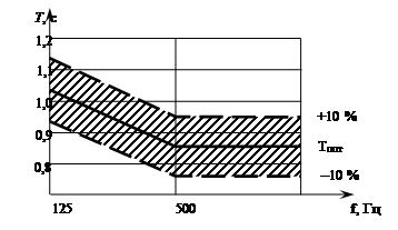 для частоты 125 Гц: 1,03 с × 1,1 = 1,13 с; 1,03 с × 0,9 = 0,93 с.