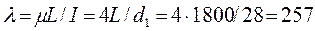 Здесь, учитывая наличие зазоров в закреплении винта, принято μ = 1 (шарнирное закрепление концов); для круглого сечения радиус инерции: