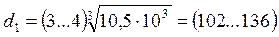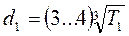 Диаметр меньшего шкива определяем по эмпирической формуле: