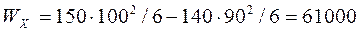 Так как сечение балки - полый прямоугольный брус, то расчет момента сопротивления ведем по формуле: