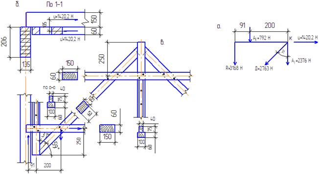 Каждая ветвь раскоса приваривается двумя швами длиной по 70 мм при Кf = 6 мм.