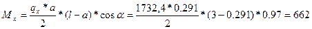 Изгибающий момент определяется как в плите, опёртой по трём сторонам. Однако при отношении а/b < 0,5 влияние опирания на сторону «а» делается незначительным и плита рассчитывается, выделив полосу 1 см как консоль с вылетом «а» по формуле: