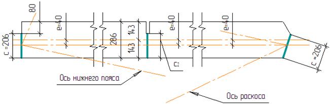 Концевой стержень центральной панели нижнего пояса фермы Д-Д` приваривается к трём ветвям шестью швами.
