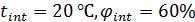 ¾ Расчетные сочетания нормируемых параметров внутреннего воздуха: ![]()