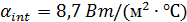 ¾ Значение коэффициента тепловосприятия внутренней поверхности ограждающей конструкции: ![]()
