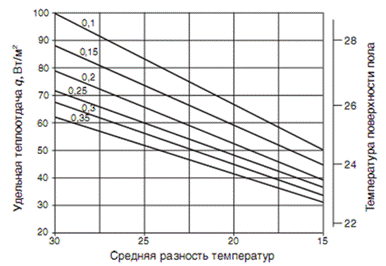 Среднюю температуру пола помещений следует принимать не выше 260 C с постоянным пребывание людей.