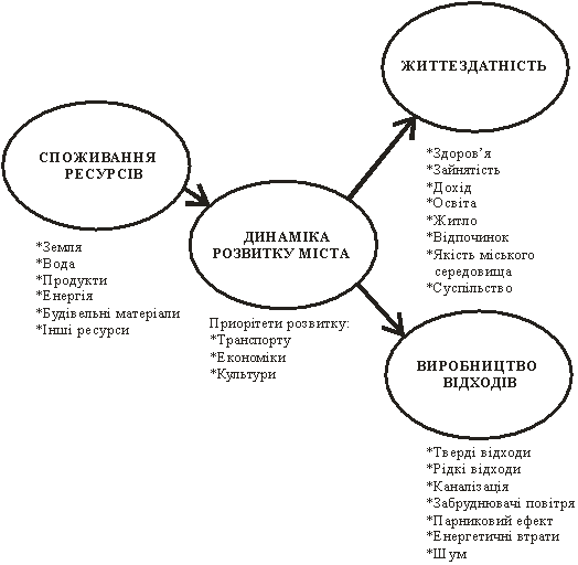 Одна з найбільш сильних тем літератури по сталому розвитку міста, є думка, що якщо ми хочемо вирішити наша проблеми, то повинні розглядати місто як екосистему. Подібно іншим екосистемам, місто – відкрита система, споживаюча енергію та ресурси. Його головні екологічні проблеми (і економічні затрати) зв’язані з компенсацією збільшення споживання за рахунок управління відходами життедіяльності міста , які, відповідно, також збільшуються.