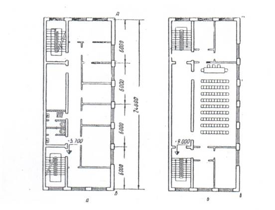 Строительными нормами длина производственных зданий не ограничивается в случае применения только огнестойких конструкций. При использовании сгораемых конструкций (хотя бы только перекрытий) необходимо здание разделить поперечными стенами – брандмауэрами.