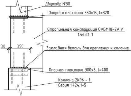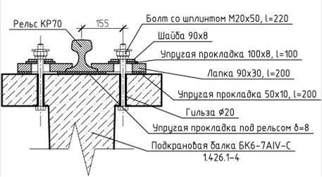 Крепление подкрановой балки к консоли колоны производится на анкерных болтах, пропущенных сквозь опорный лист, предварительно приваренный к опорной пластине, а к шейке колонны - путём приварки вертикального листа к закладным деталям.