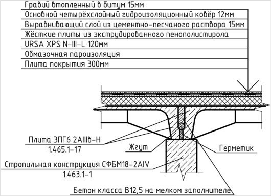 Конструкция покрытия - железобетонные ребристые плиты 1.465.1-17