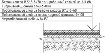 Гидроизоляция фундамента - отмостка из асфальтобетона (класса прочности В15) h = 30 мм на на уплотнённом щебне h = 100 мм. Горизонтальная гидроизоляция предусмотрена на отметке 0.000 h = 30 мм из цементно-песчаного раствора 1: 2.
