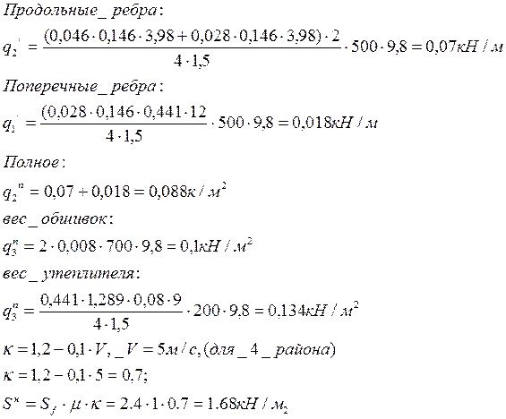 W+ = 0,23 * 0,4 * 0,8 * 1,4 * 4 * = 0,41 (кН/м)