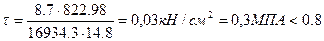 5. Проверим прочность по скалыванию в плоскости приклейки досок-накладок, на которые опираются уголки.