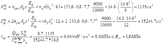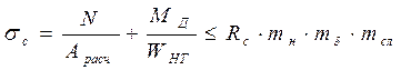 Найдем нормальные напряжения и сравним их с расчетным сопротивлением