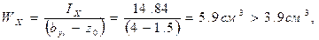 Принимаем равнополочный уголок ∟40х7 мм с Iх = 14,84 см4 и z0 = 1,5 см. Момент сопротивления уголка: