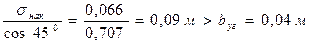 Принимаем толщину уширения колонны равной двум толщинам досок после фрезерования d = 2 * 0,033 = 0,066 м, что достаточно для размещения уголка ∟40х7 мм под углом 450 , т.к.:
