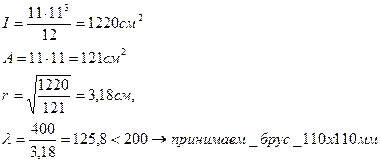 Принимаем по конструктивным соображениям брус сечением 110х110мм. Для него расчетная длина равна расстояние между точками закрепления