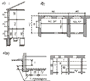 −размеры внутренних стен измеряют: а) в плане от внутренних поверхностей наружных стен до осей внутренних стен или между осями внутренних стен; б) по высоте как показано на рис. 1;
