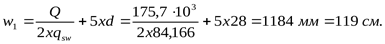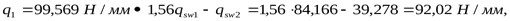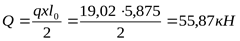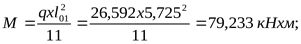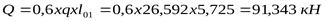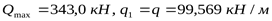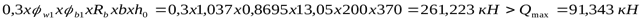 Поперечная сила на опоре Qmax=91,343 кН, фактическая равномерно распределенная нагрузка q1=26,592 кН/м.