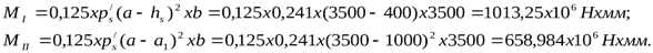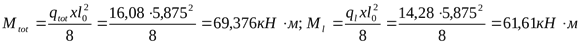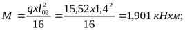 Изгибающий момент для полосы шириной 1 м определяем с учётом частичной заделки в рёбрах по формуле: ![]()