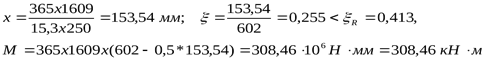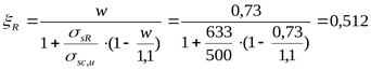 по формулам п. 3.12 [2]. Находим характеристику сжатой зоны бетона