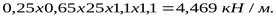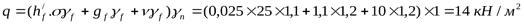Расчётный пролёт l0=335мм. Нагрузка на 1м2 полки толщиной 25мм будет равна: