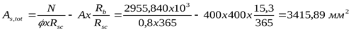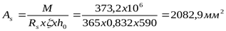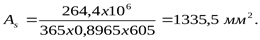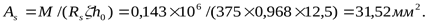 , тогда требуемая по расчету площадь продольной рабочей арматуры будет равна: