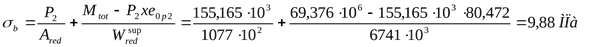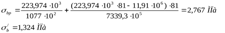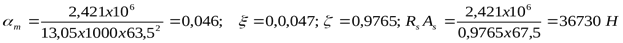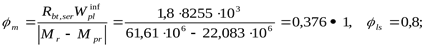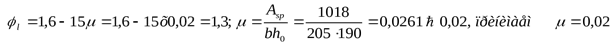 В сжатой зоне принимаем арматуру 4ш8 АIII (Rsc=355 МПа), A/s=201мм2. Определим по формуле 46 [4] значение ![]()